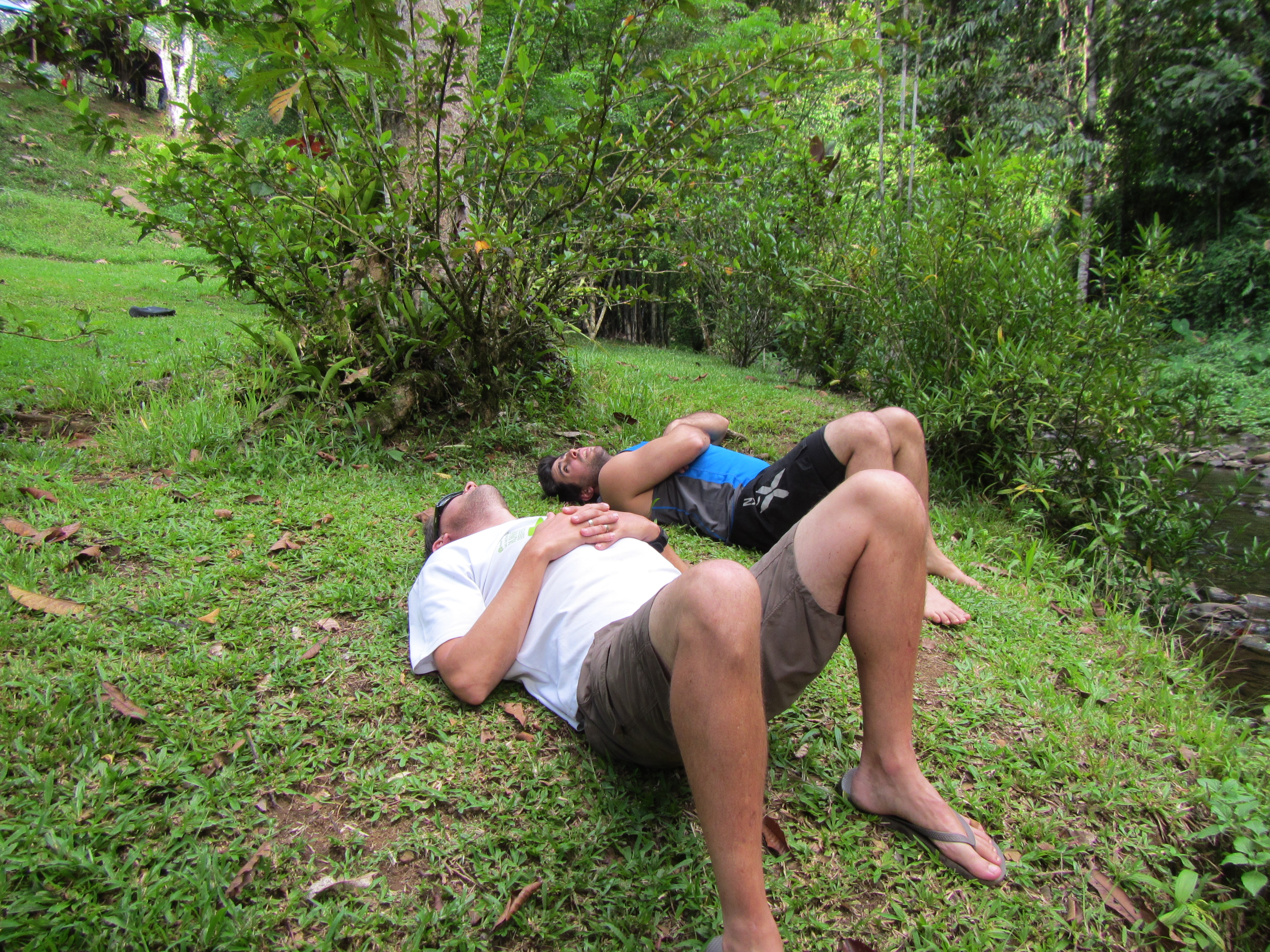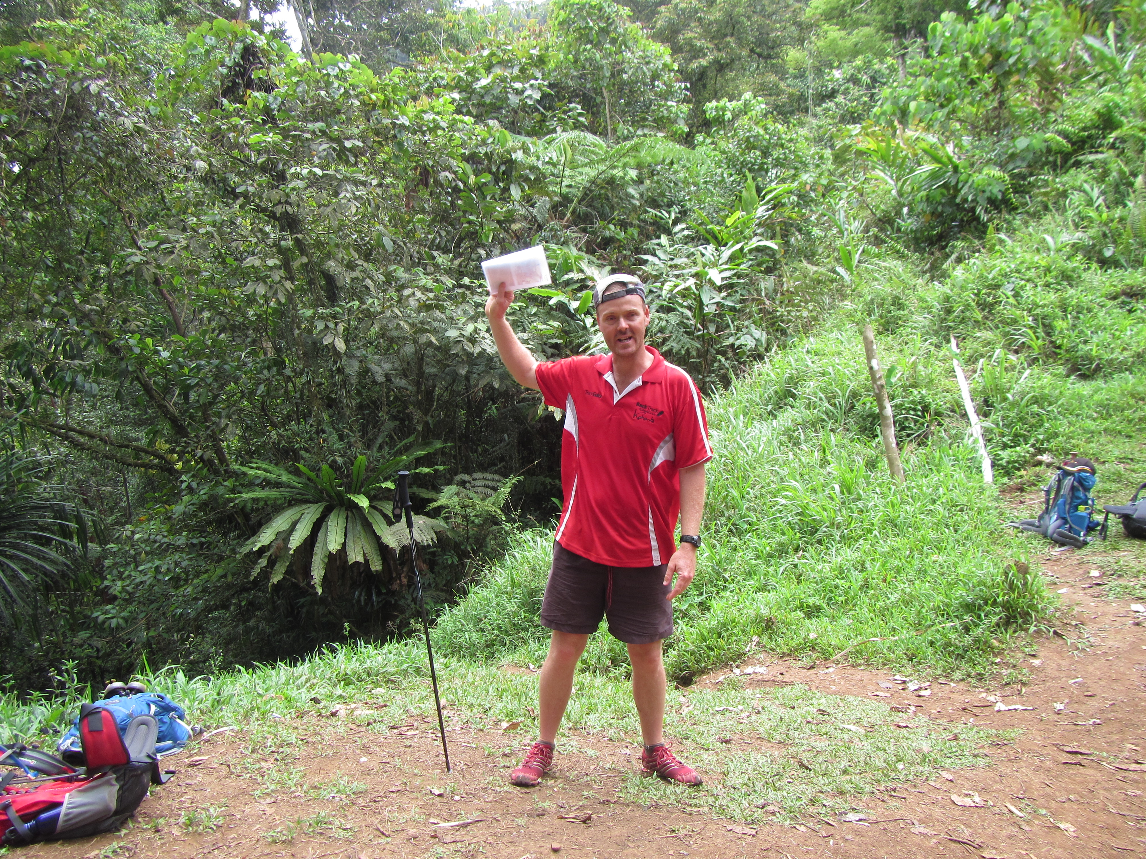 And off we go. I’m at the back of the pack as usual, and it’s one step at a time. Slowly but surely. All I’m doing is concentrating on each step, one at a time… and breathing. We make it to the top in about 45 minutes. Now that probably sounds easy to you reading this, but just remember we’re virtually climbing, not walking, in 30 degree heat in the jungle. We were pretty proud of our efforts and the comeraderie was in full swing, with lots of back slapping and high fives at the top.