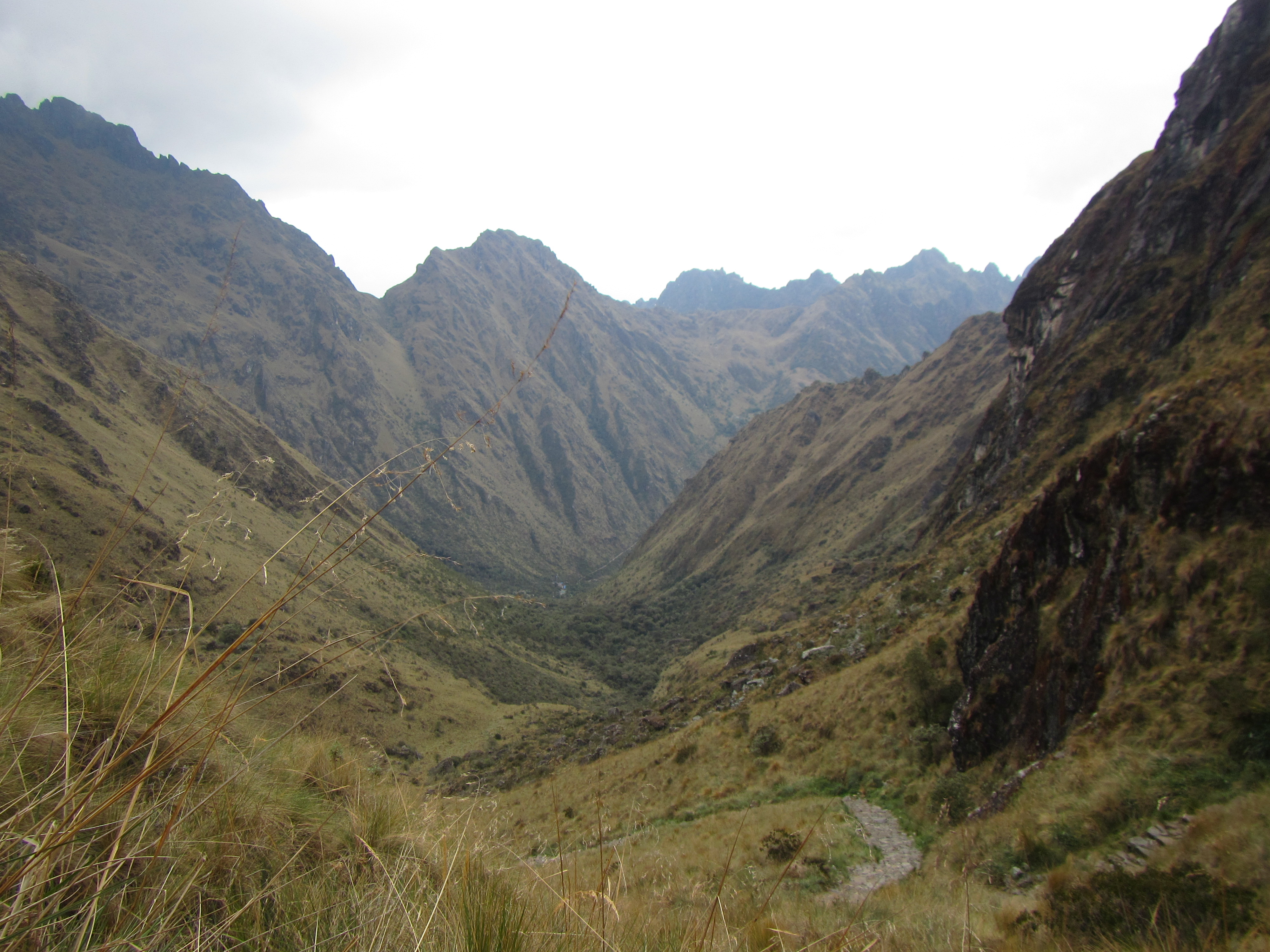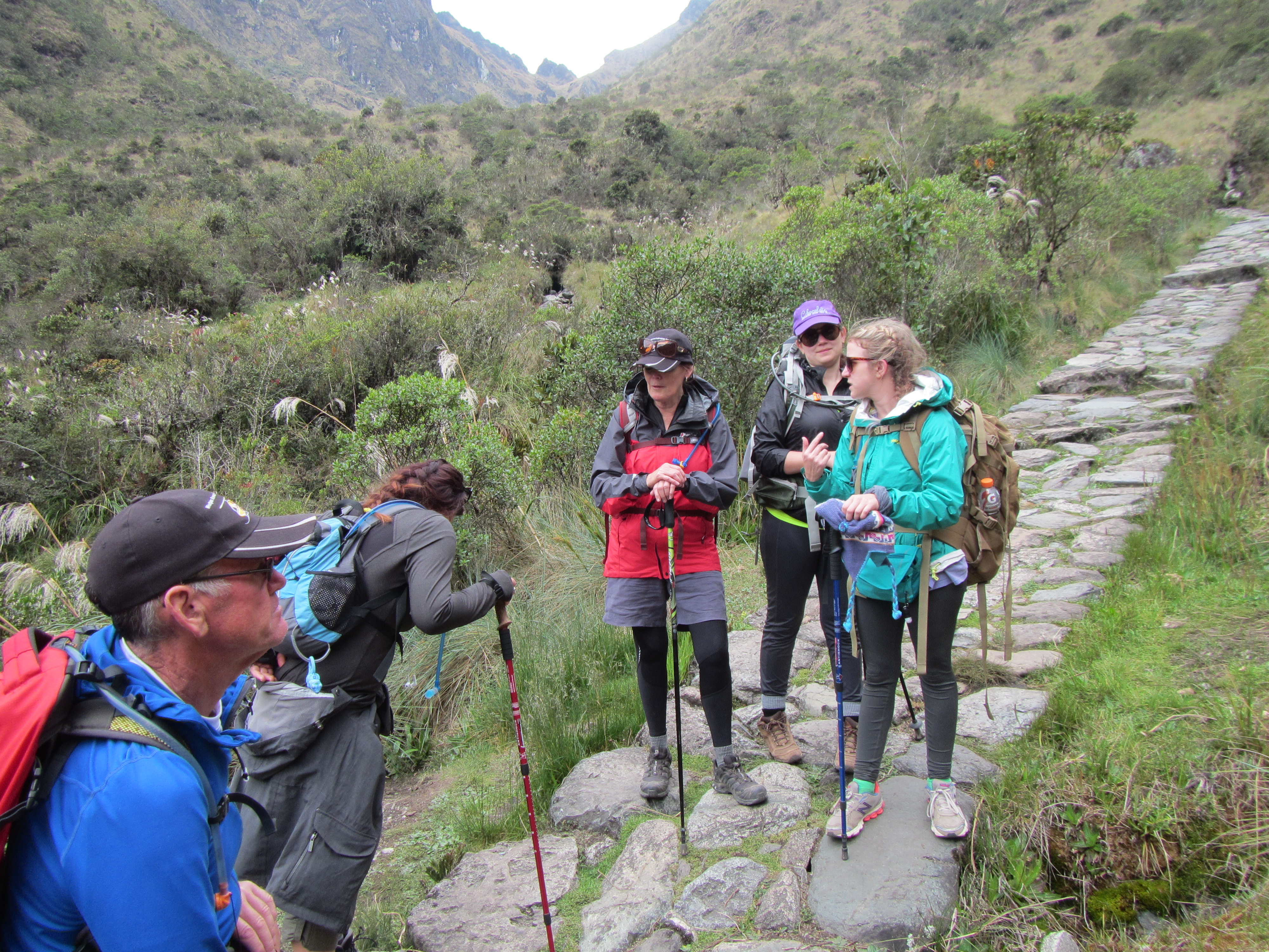 There’s a group of about 75 students on the trail, who pass us at this point. All young boys from a school in Cusco, completing their rite of passage. They are dressed in all sorts of get up, some carrying packs, others not so much. Some look exhausted already, others are full of energy and bravado… time will tell. This won’t be the last time we come across them.