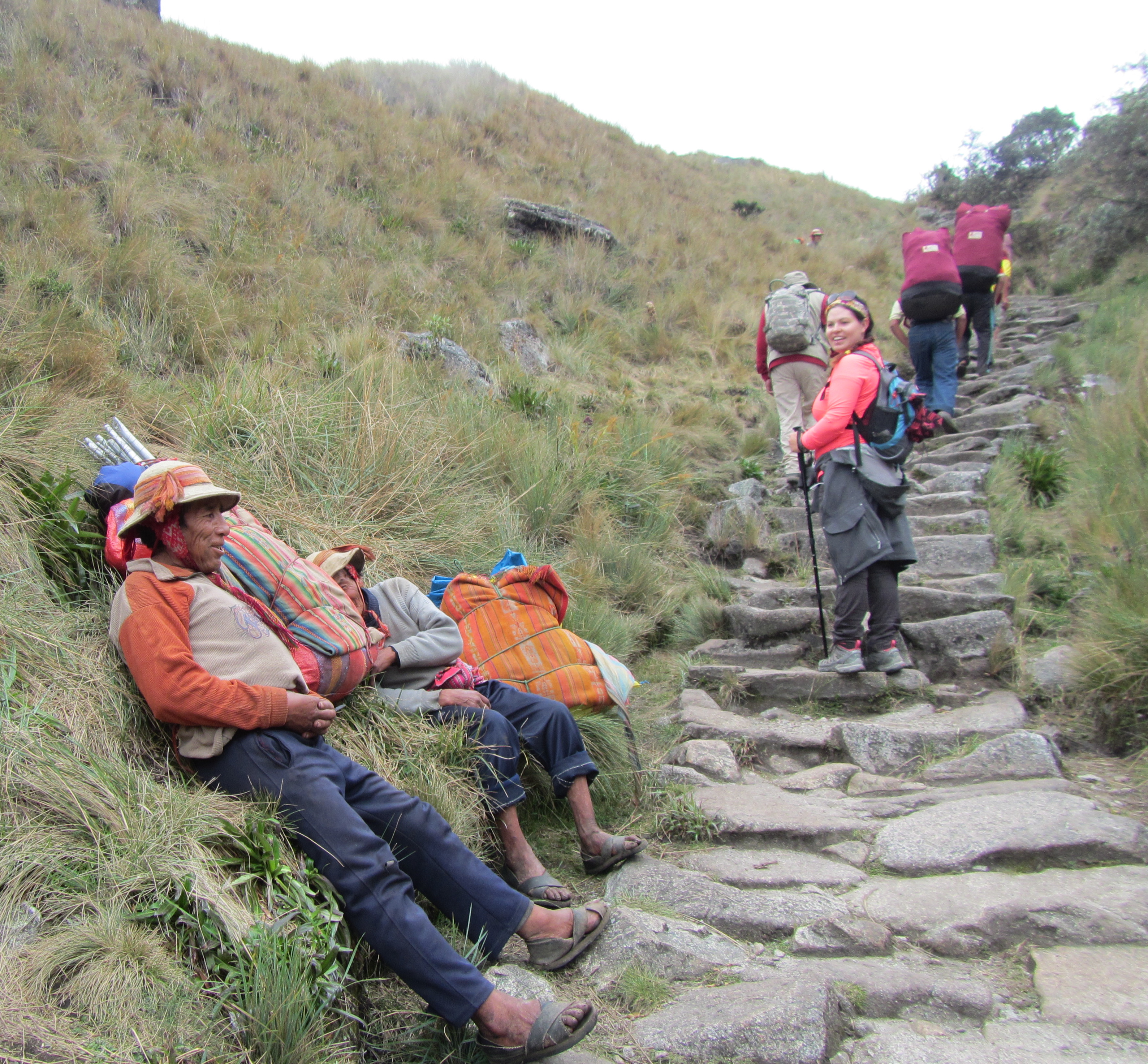 We pass a couple of porters having a rest on our way up the mountain. It’s not often you see them resting… and as I gestured to the two of them to smile for a photo, one of them hid from my camera. There was no way he was going to be seen having a rest! They giggled at my attempts and I gave up with a “hello, my friend” in Quechuan. “Allinllachu kuna!” (I think that’s how you spell it…). They were just so lovely. The people of Peru have most definitely stolen my heart.