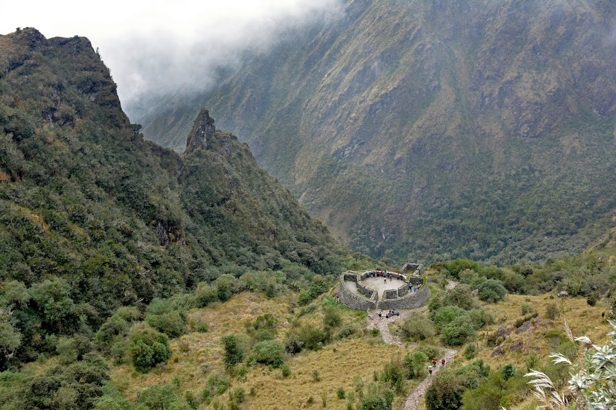 We keep climbing, step by step, breath by breath, stopping on cue at the 12 minute mark. A regular rhythm sets in and after a few hours we reach our first stop for the day at the archaeological complex of Runkurakay. Another stunning outlook pans out before us in the valley below. The Incas certainly knew their real estate…